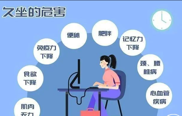 长期久坐会影响身体多个系统,例如: